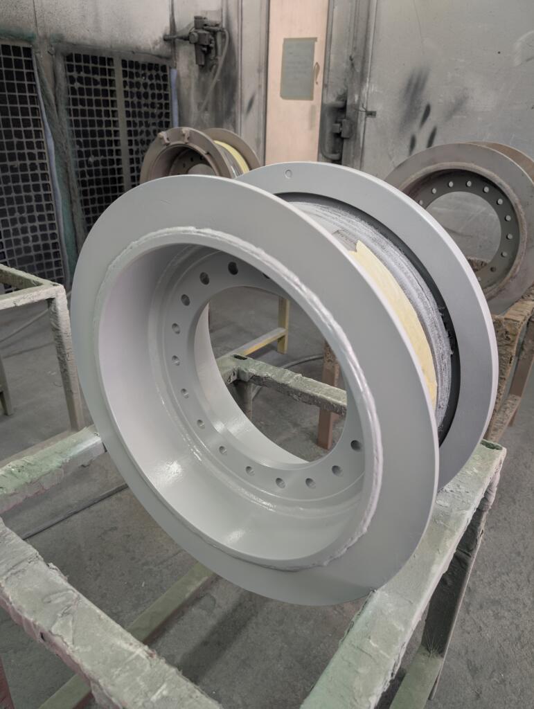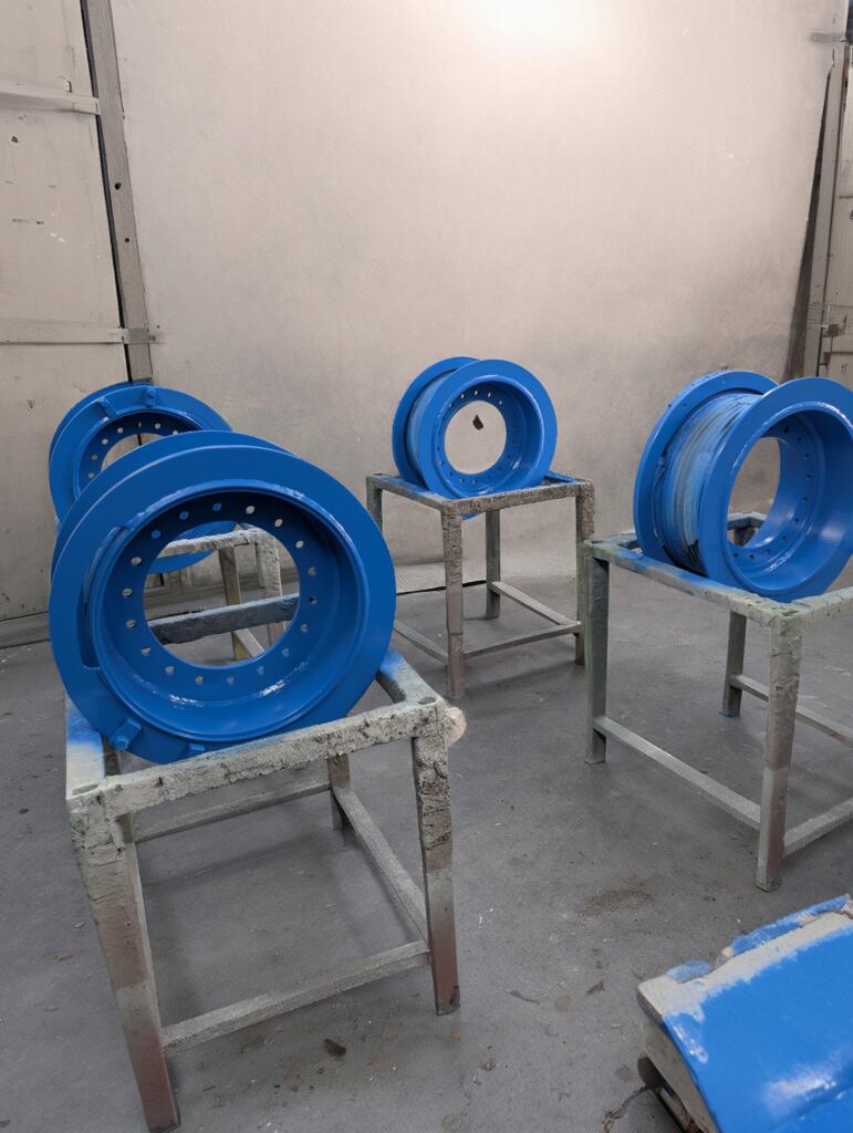 2️⃣ Surface Preparation – The winches were abrasive blasted back to bare metal to remove rust, old paint, and contaminants, creating the perfect base for coating adhesion.