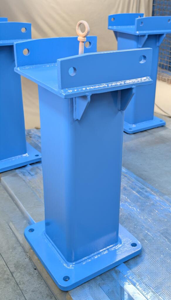 3️⃣ Marine-Grade Coating Application – We applied a high-build epoxy primer for corrosion resistance, followed by a two-pack polyurethane topcoat in the client’s chosen blue. This coating system is designed to handle salt spray, UV exposure, and heavy-duty operational use.